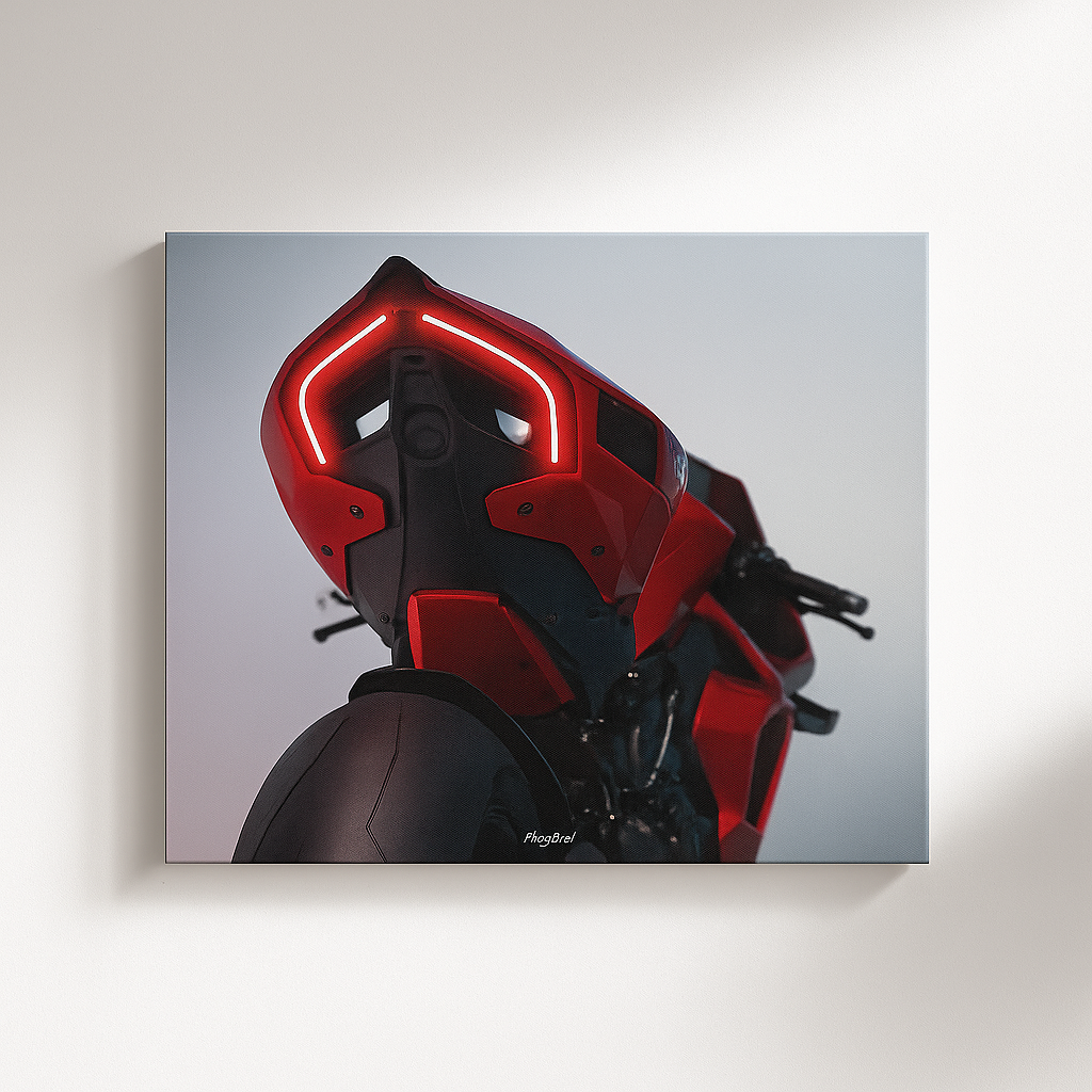 Impreso con tintas de alta calidad sobre lienzo premium, este cuadro ofrece un nivel de detalle sobresaliente, colores vibrantes y una durabilidad excepcional. Ideal para amantes de las motocicletas, entusiastas del diseño o quienes buscan añadir un toque moderno y dinámico a su hogar, oficina o garaje.