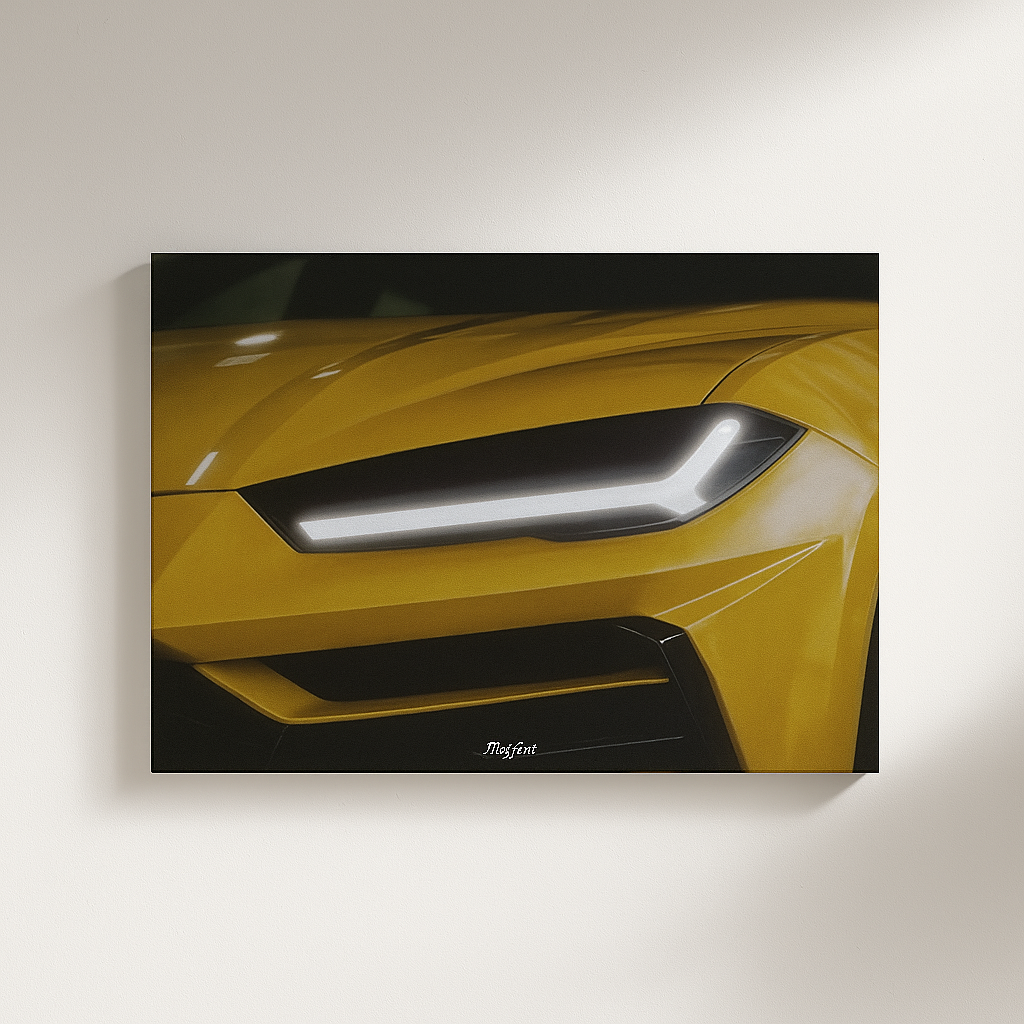 Dale un toque de poder y elegancia a tu espacio con este impresionante lienzo decorativo que captura la esencia del diseño automotriz moderno. Su vibrante color amarillo y sus líneas angulares transmiten fuerza, exclusividad y un espíritu deportivo inigualable.