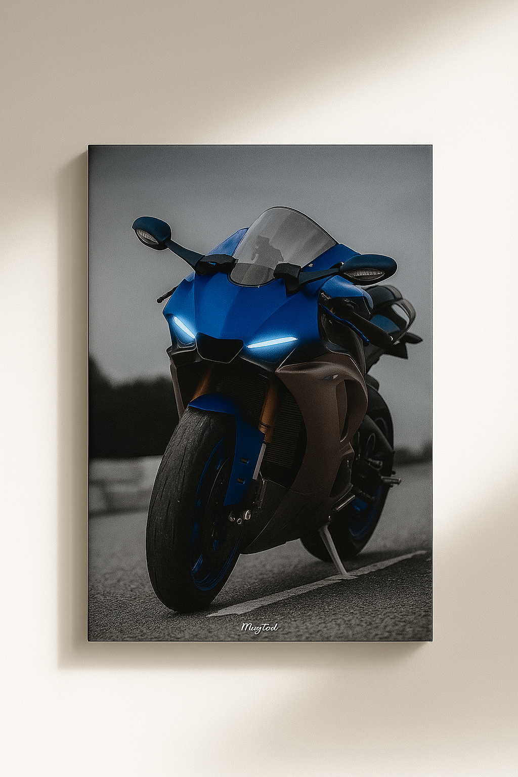Impreso con tintas de alta calidad sobre lienzo premium, este cuadro ofrece una definición impresionante, colores vibrantes y una durabilidad excepcional. Perfecto para amantes de las motos deportivas, coleccionistas o quienes buscan añadir un toque audaz y sofisticado a su espacio.